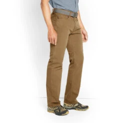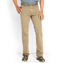 - Twill trousers with quarter-front pockets, coin pocket, and rear patch pockets