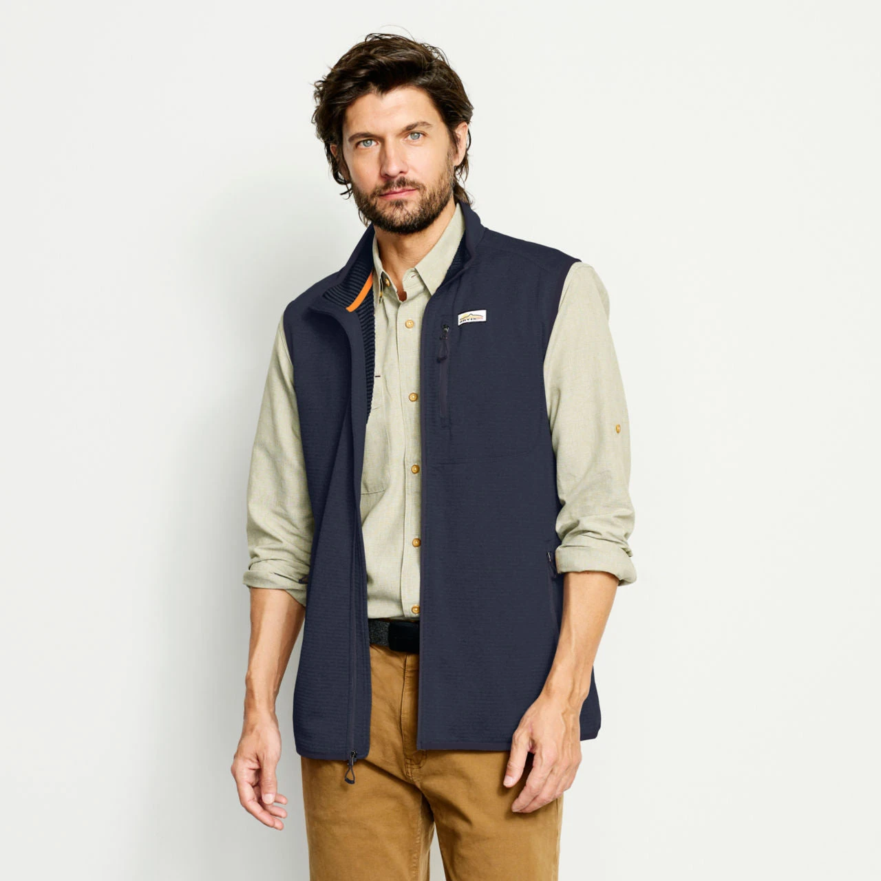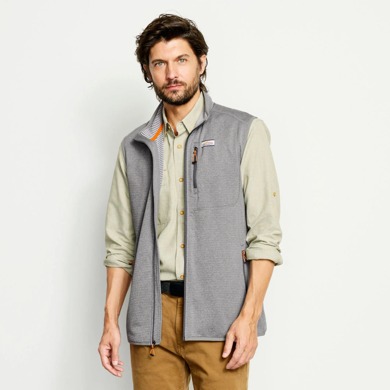 - Gridded fleece backing traps heat yet breathes to help regulate temperature