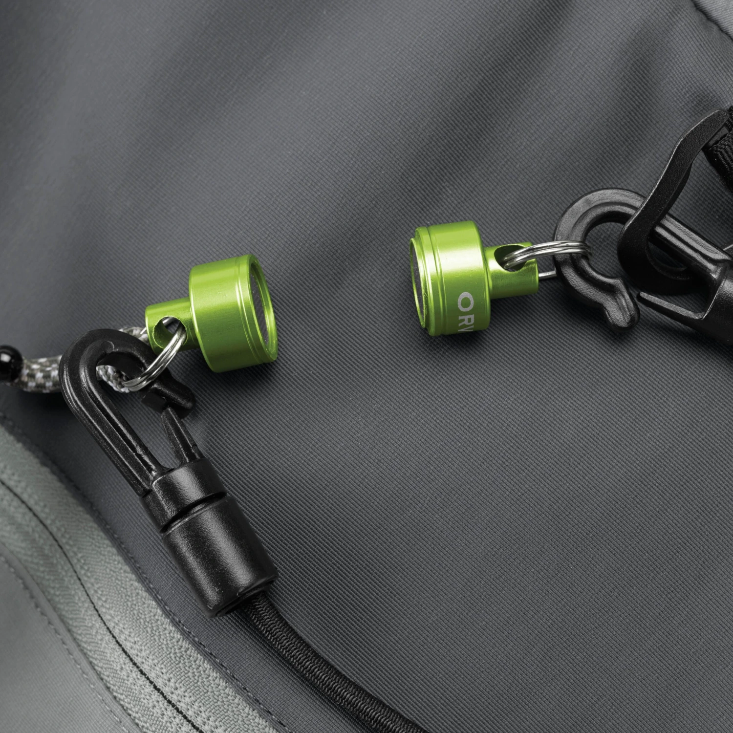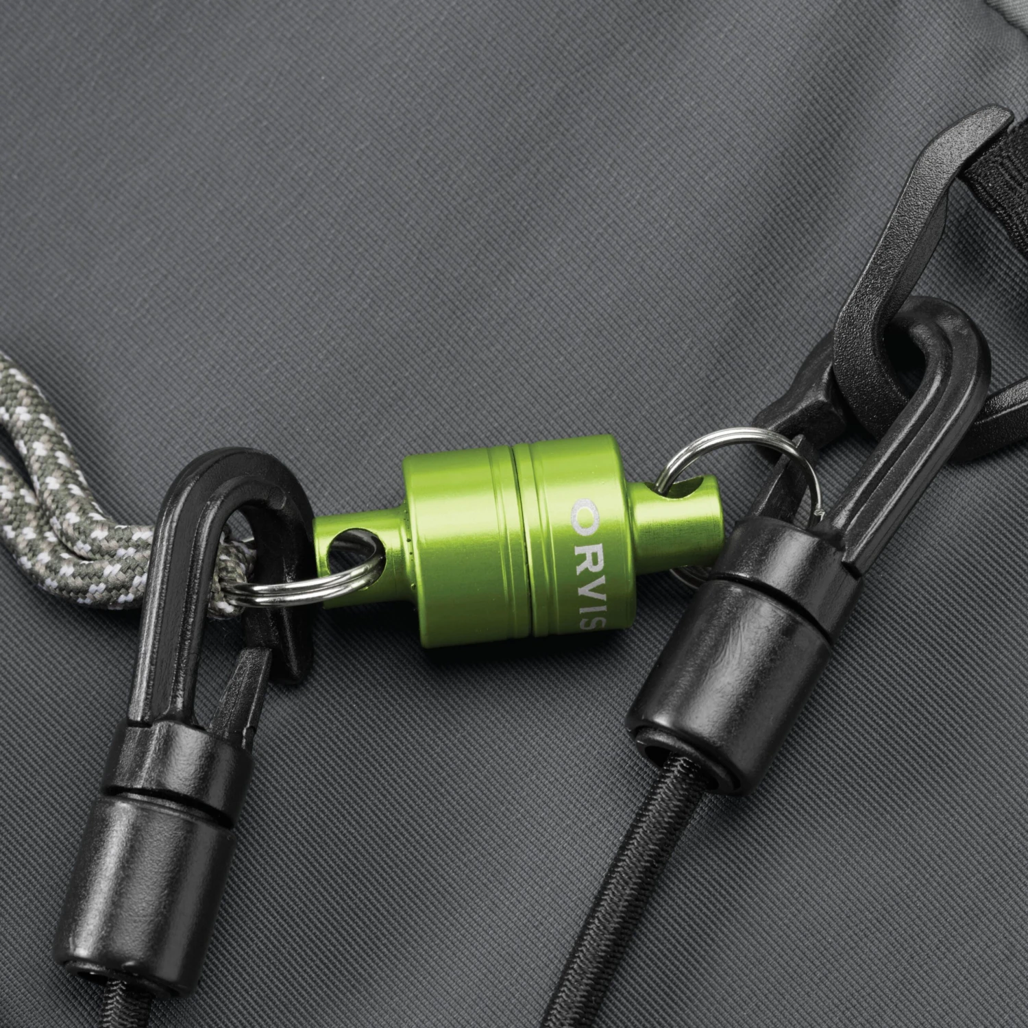- Upgraded durable bungee and split ring clips for securing to pack or vest
