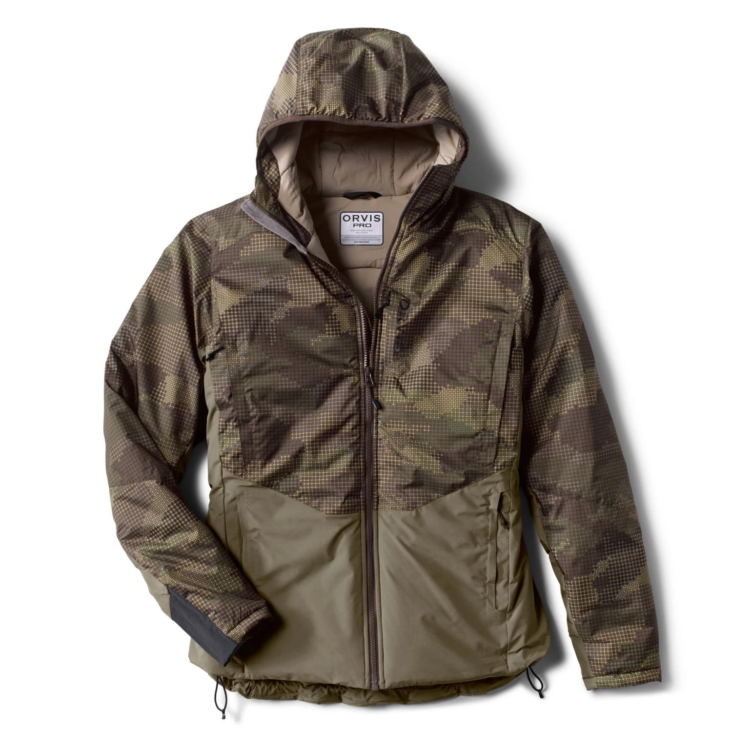 - Weather-proof drop hem. Insulated hoodie.