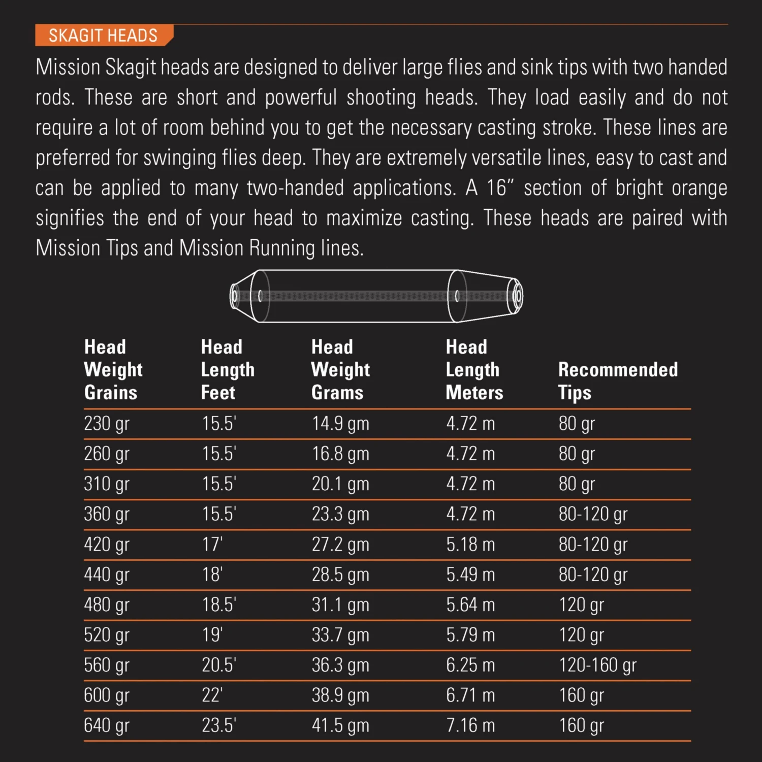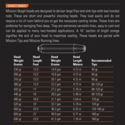 - Skagit heads should be paired with our Mission Running Line and Mission Tips