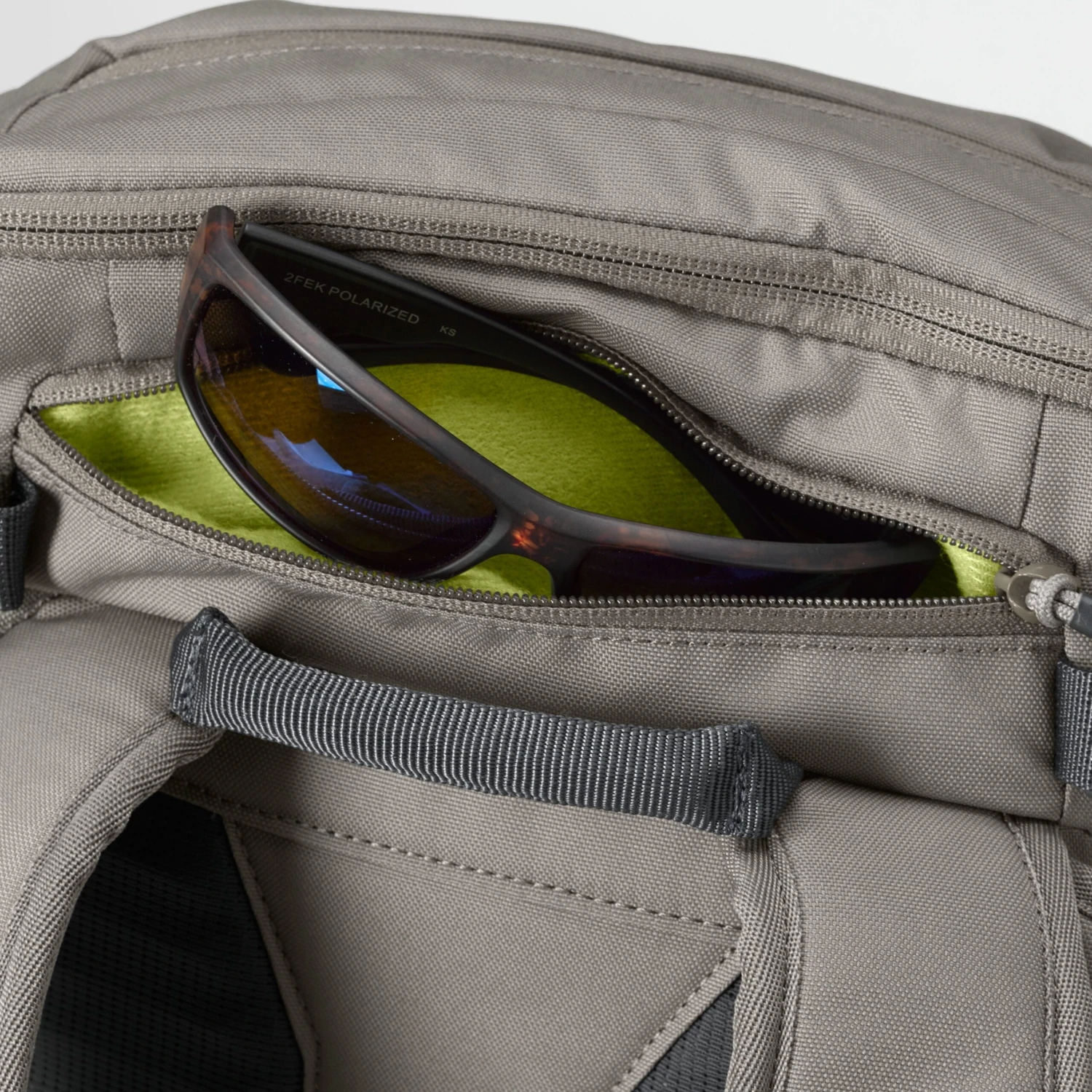 - Shoulder strap docking stations and fly patch