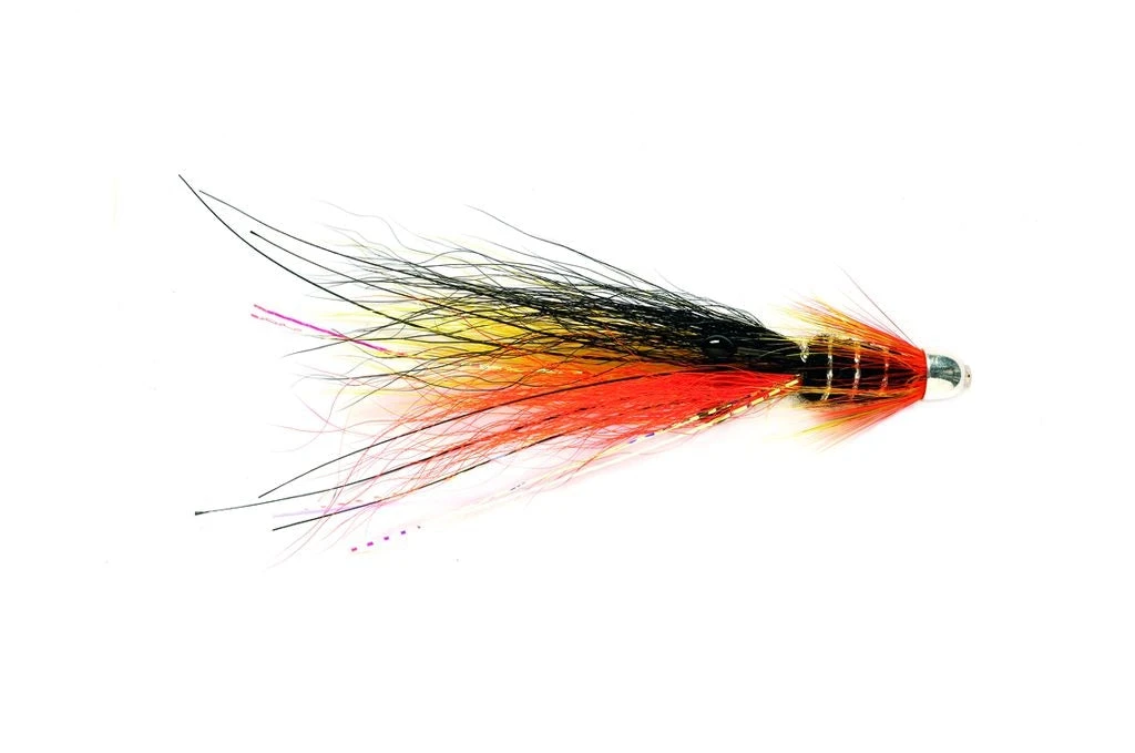 The original SuperSnaelda designed by Ron Sutherland. By blending the deadly properties of the Frances and Snaelda tubes, the two most successful flies in Iceland, this fly has it all. Fish this fly with confidence If you have not fished this style before. The Orange black & yellow colour combination ensures this aggressive looking tube will keep catching many salmon at home or abroad.