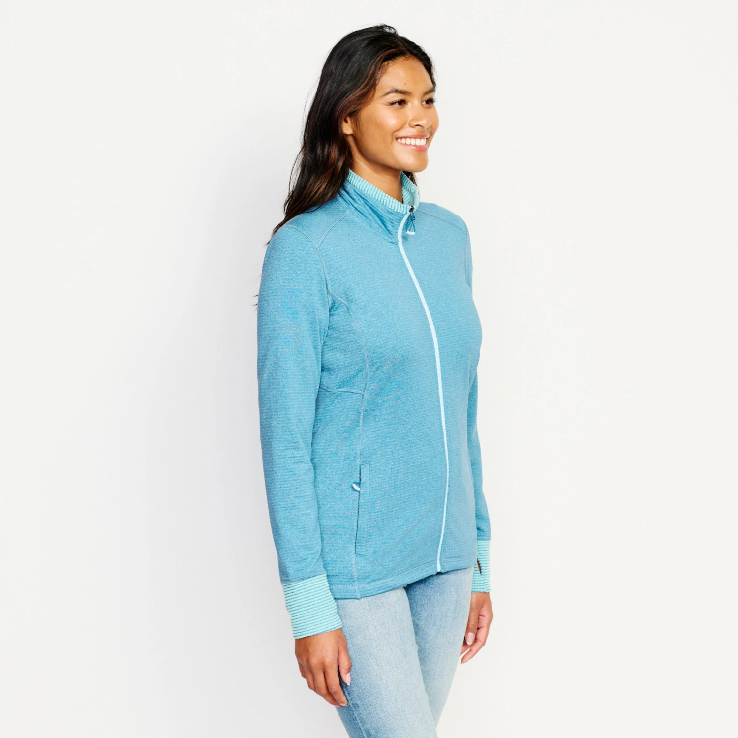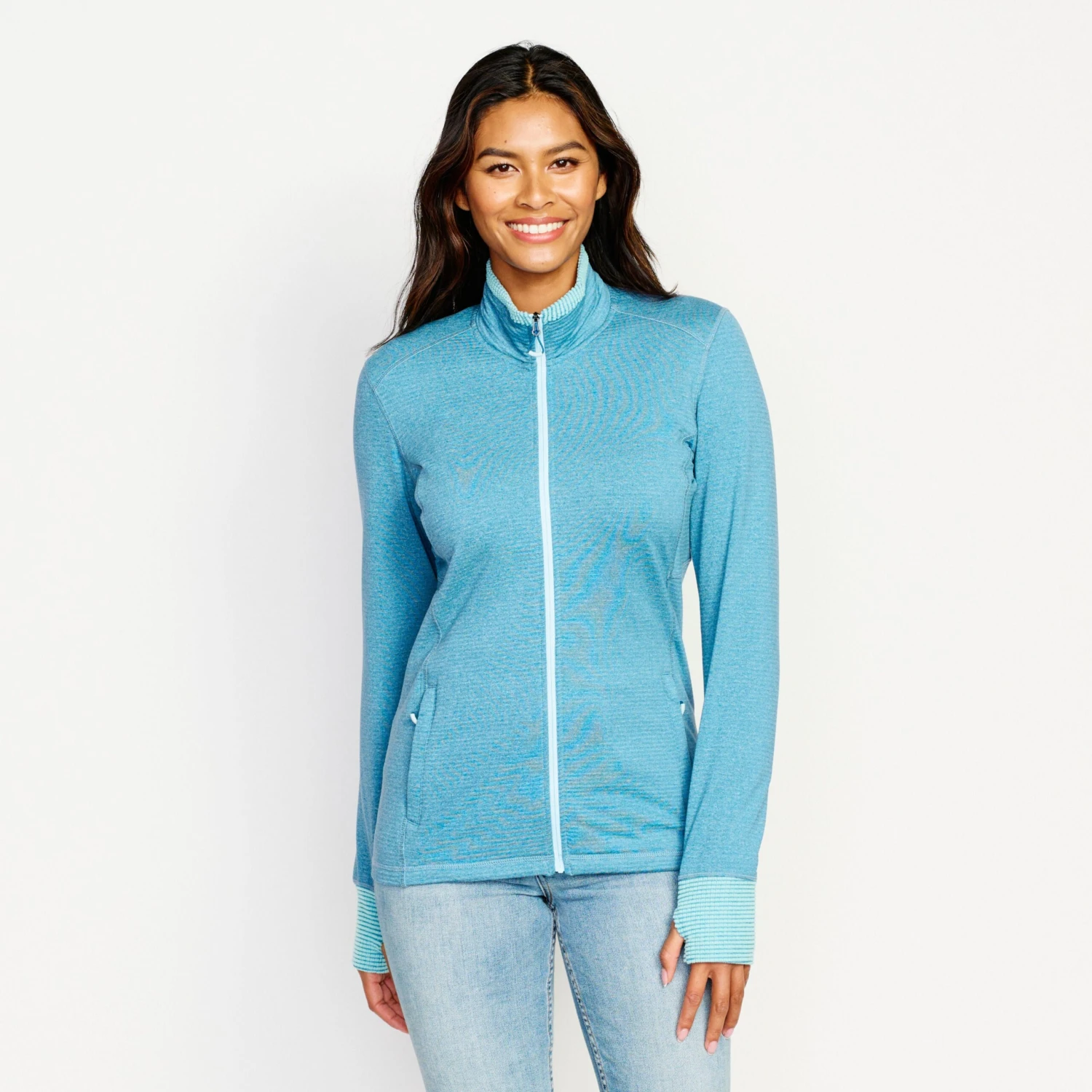 - Thumb loops prevent the sleeves from bunching under layers