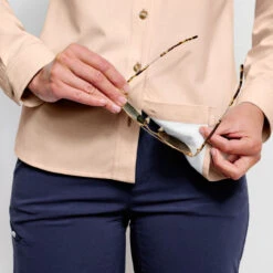 - Cleaning cloth hidden in hem keeps shades or eyeglasses spot free