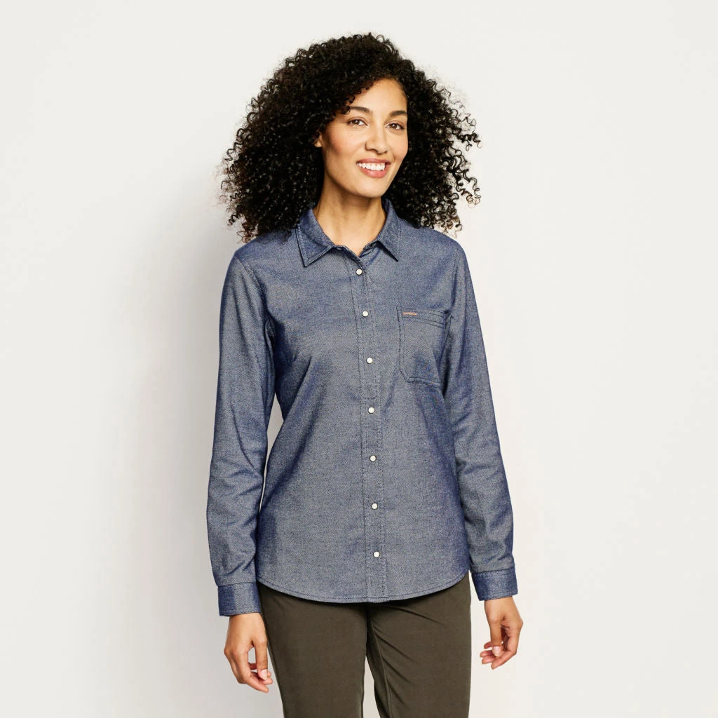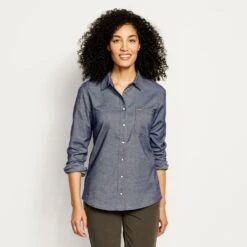- Finished with a pearlized snap front and cuffs and one chest pocket with slot for holding your shades